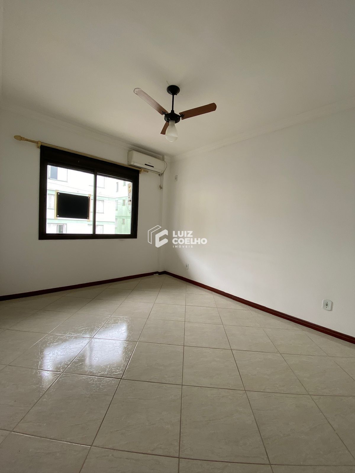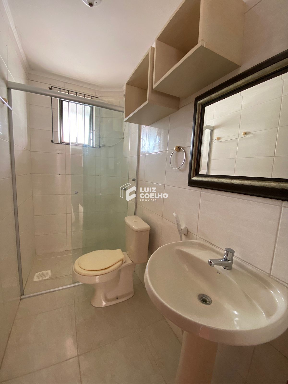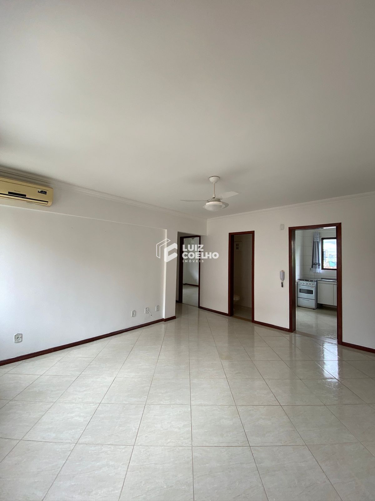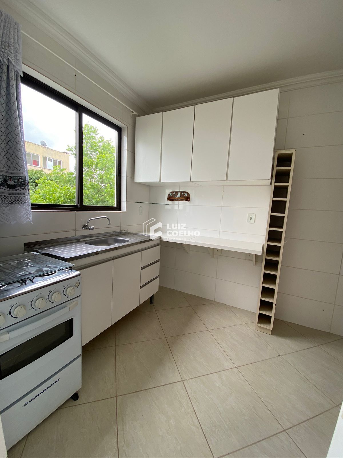 Apartamento 02 dormitórios, 02 banheiros, sala ampla com ventilador e ar condicionado, cozinha com armários, fogão e área de serviço separada.