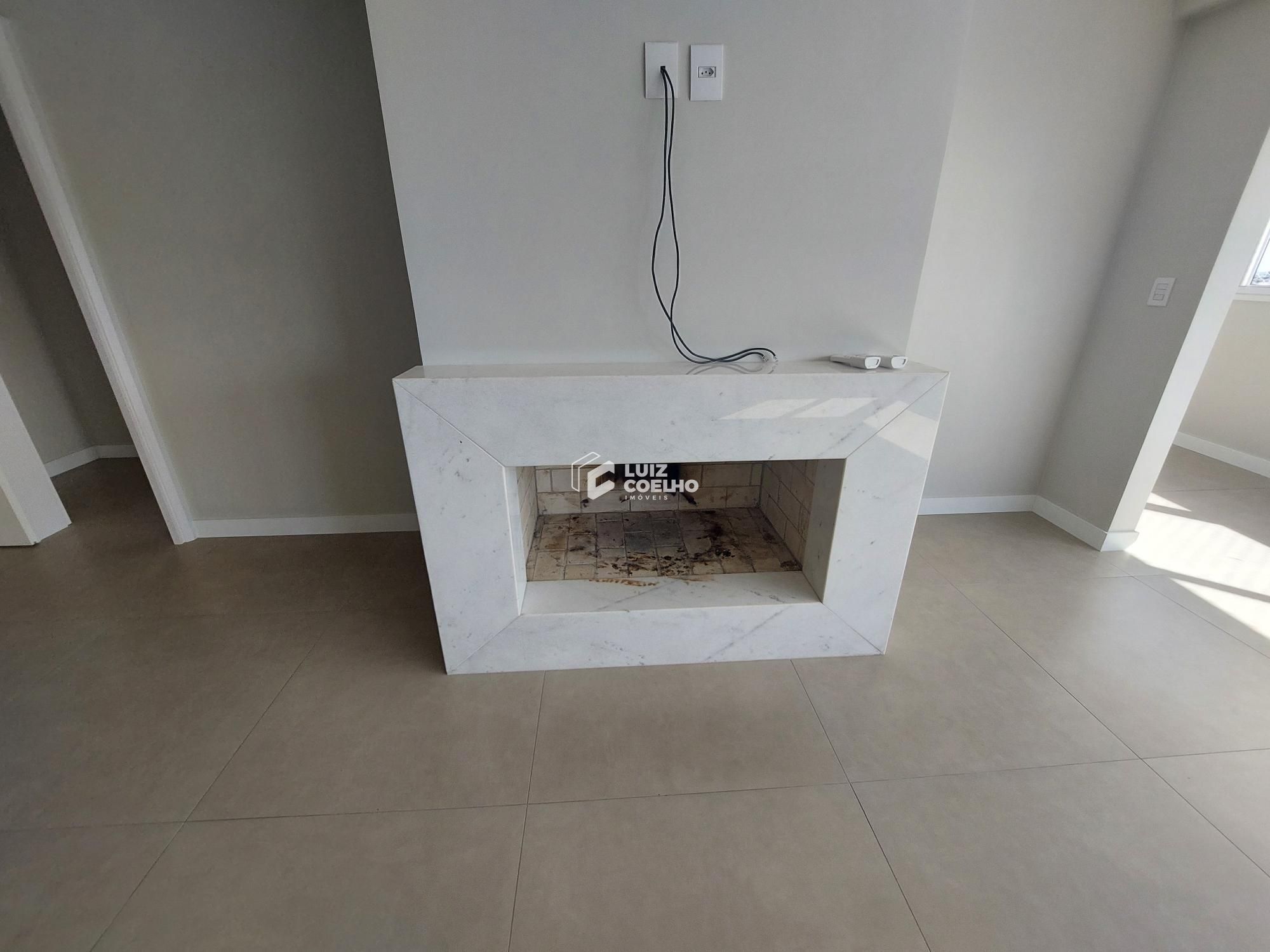Amplo living integrado, lareira aconchegante e vista panorâmica da cidade