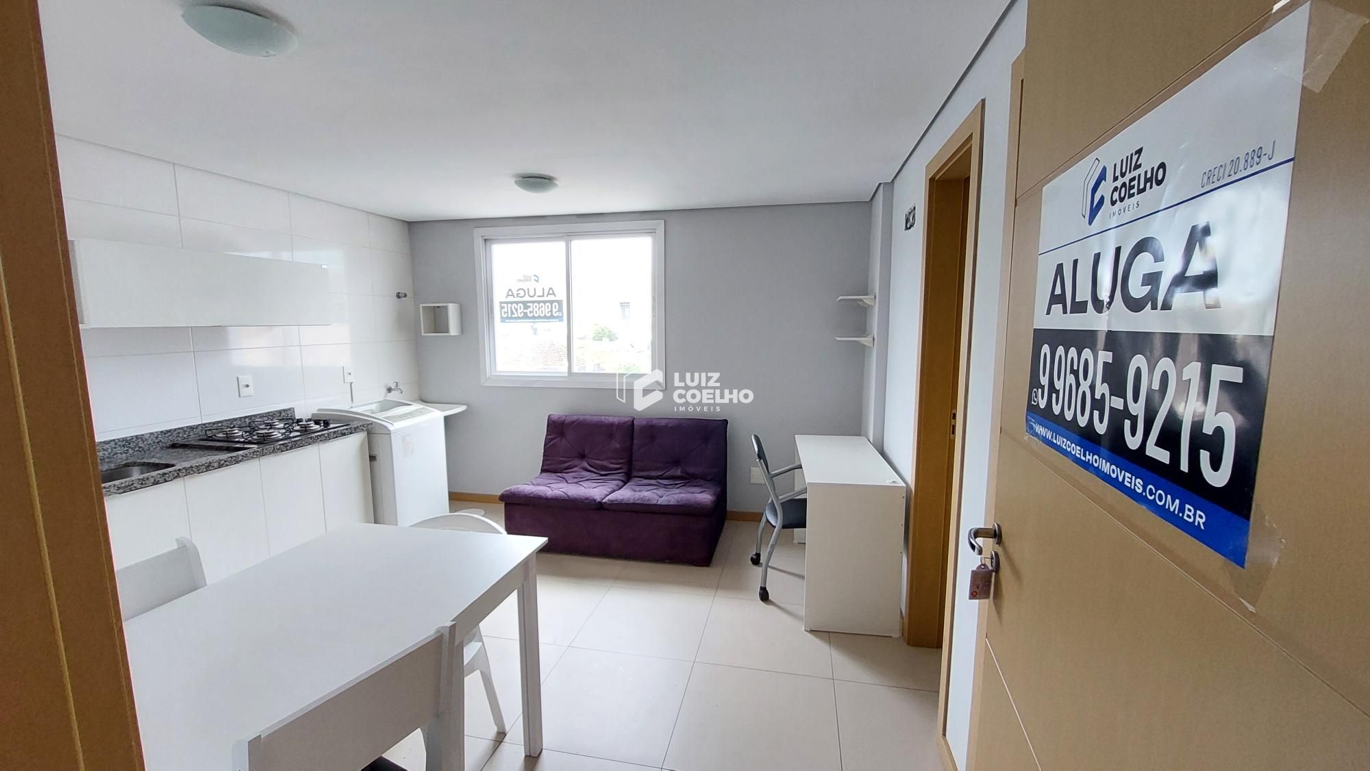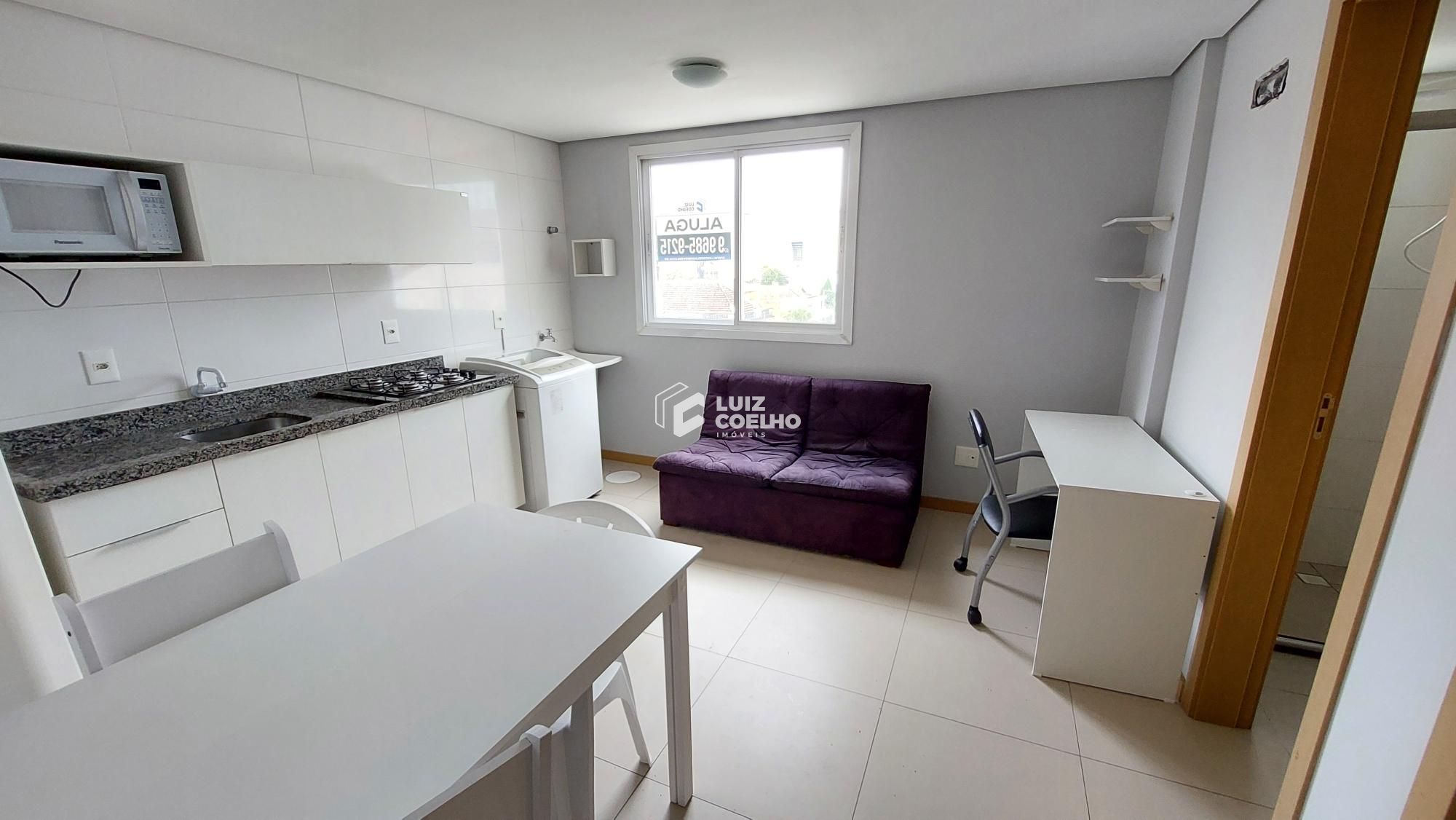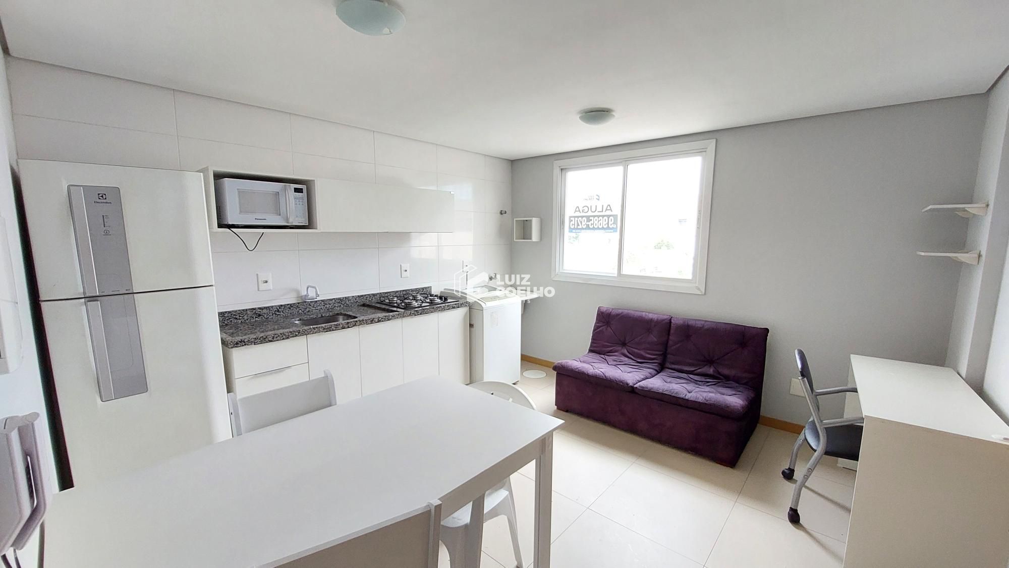 Aluguel de apartamento mobiliado próximo a UFN . O imóvel conta com 1 dormitório, banheiro social e cozinha equipada com micro-ondas, fogão e geladeira, além de móveis planejados, oferecendo ambientes completos e bem distribuídos. O prédio possui elevador e acessibilidade para PCD.