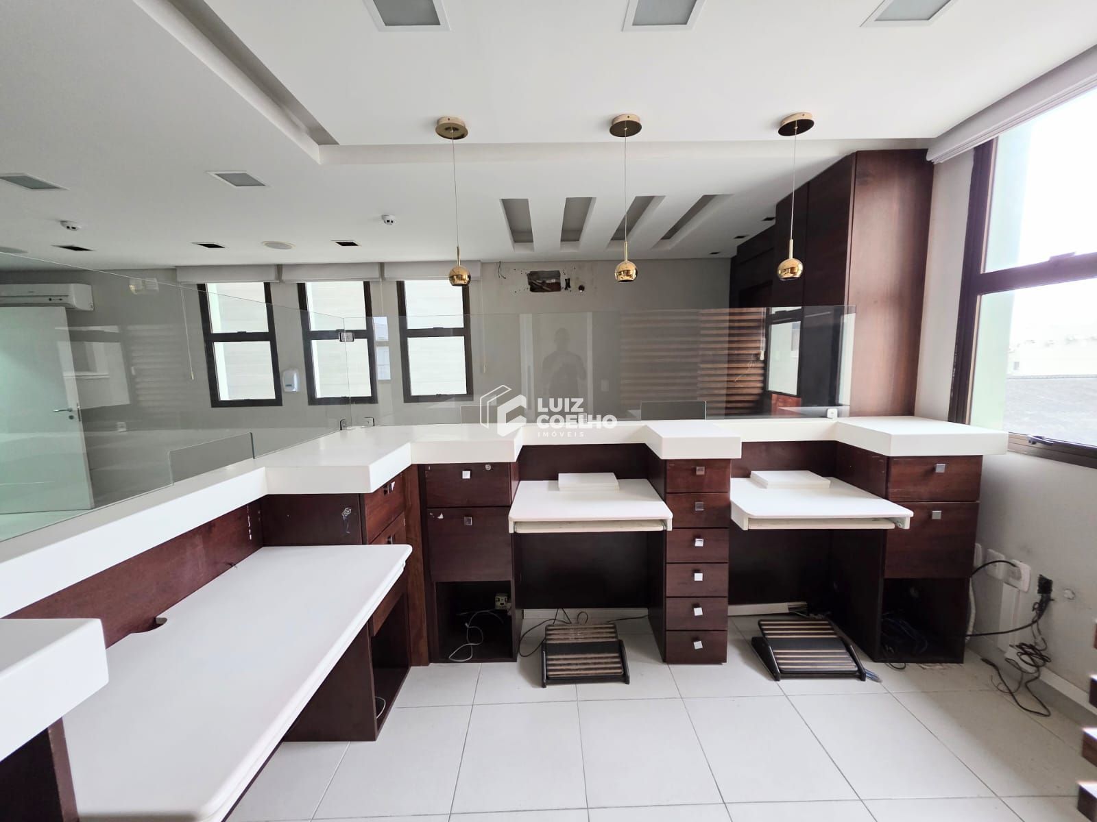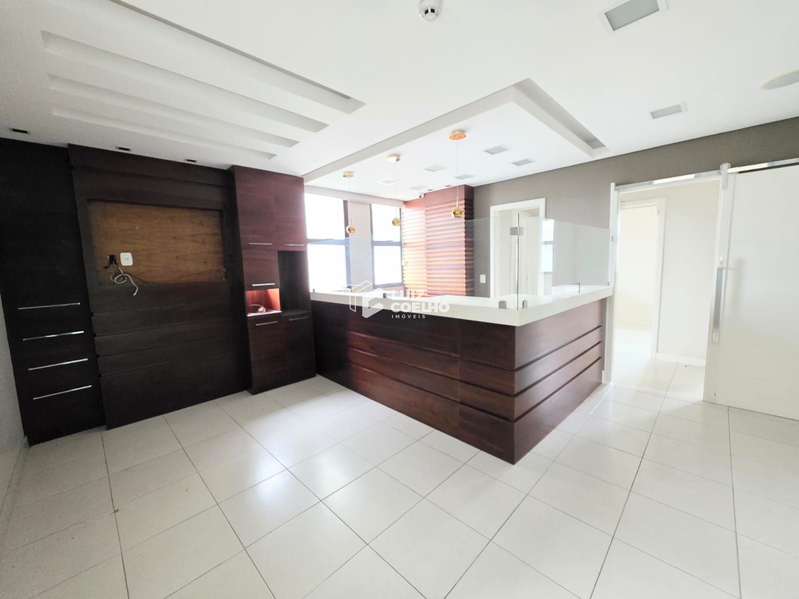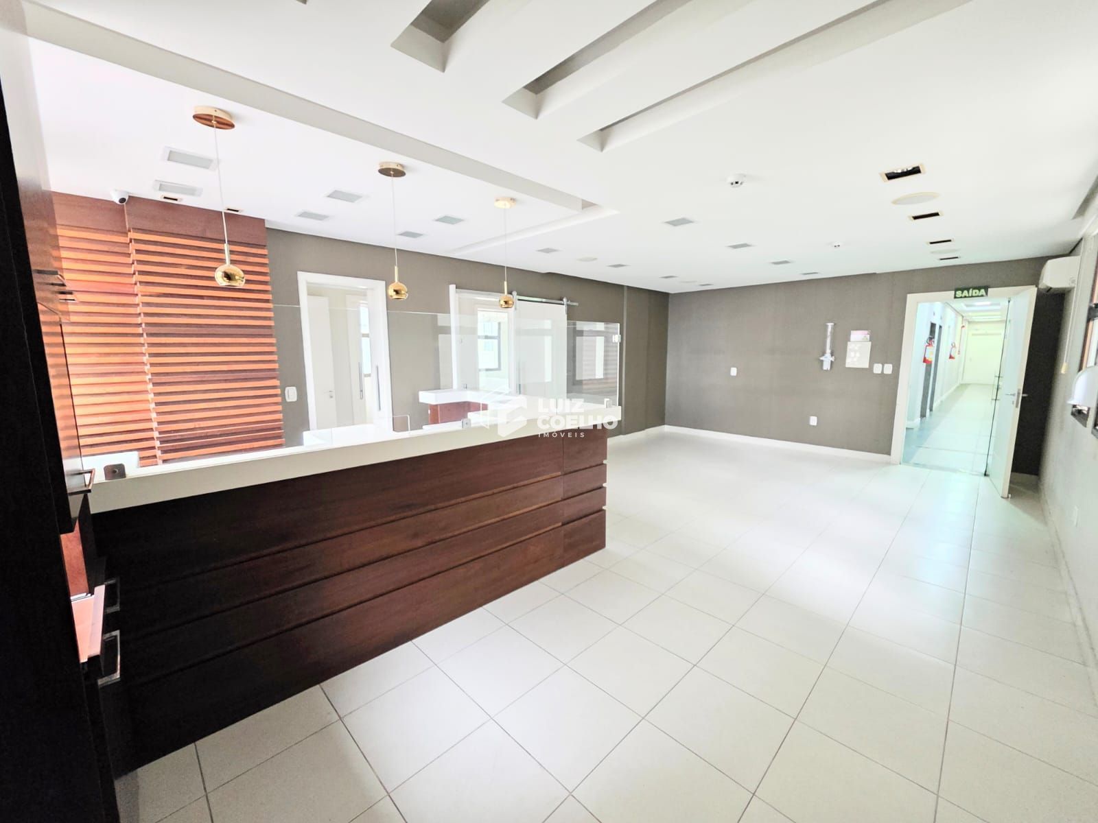Recepção mobiliada, com divisórias internas para atendimentos privativos, ´2 banheiros internos e 01 no corredor.